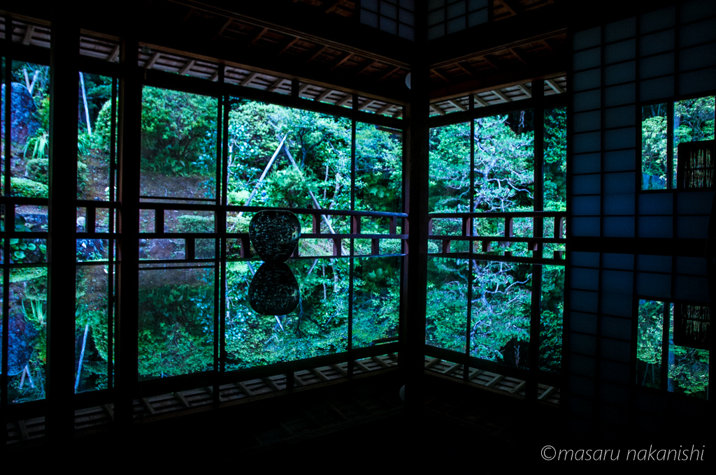 中央に机が置いてあり、そちらに庭の景色が映って1枚目のような写真が撮れます。